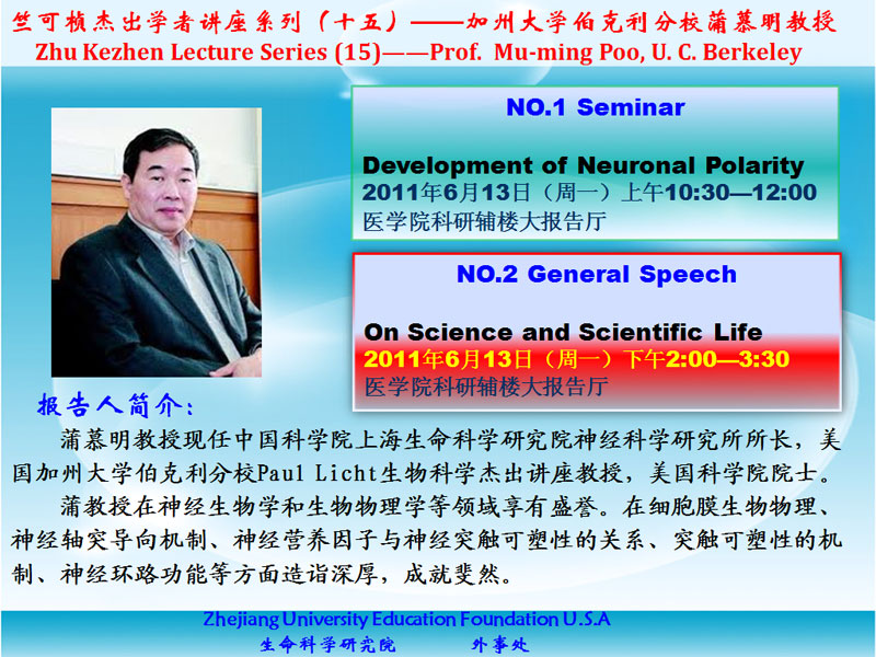 2011年6月13日加州大学伯克利分校蒲慕明教授来我校做讲座