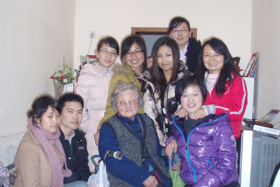 朱良沄老人,今年85岁,是浙江大学农学院茶学系已故教授张堂恒先生的妻子,1949年燕京大学新闻系的毕业生,曾在北京新华社工作,现为杭州市青春中学离休干部。几年前,张先生过世,老人唯一的女儿在美国定居,她自己又行动不便,每天坐在家里,最盼的就是有人能陪她聊聊天。了解到这一情况后,我们儿院研究生自发组织每天轮流过去陪她聊天谈心,逢年过年还陪她一起过年吃饭。渐渐地,老人脸上的笑容多起来了。