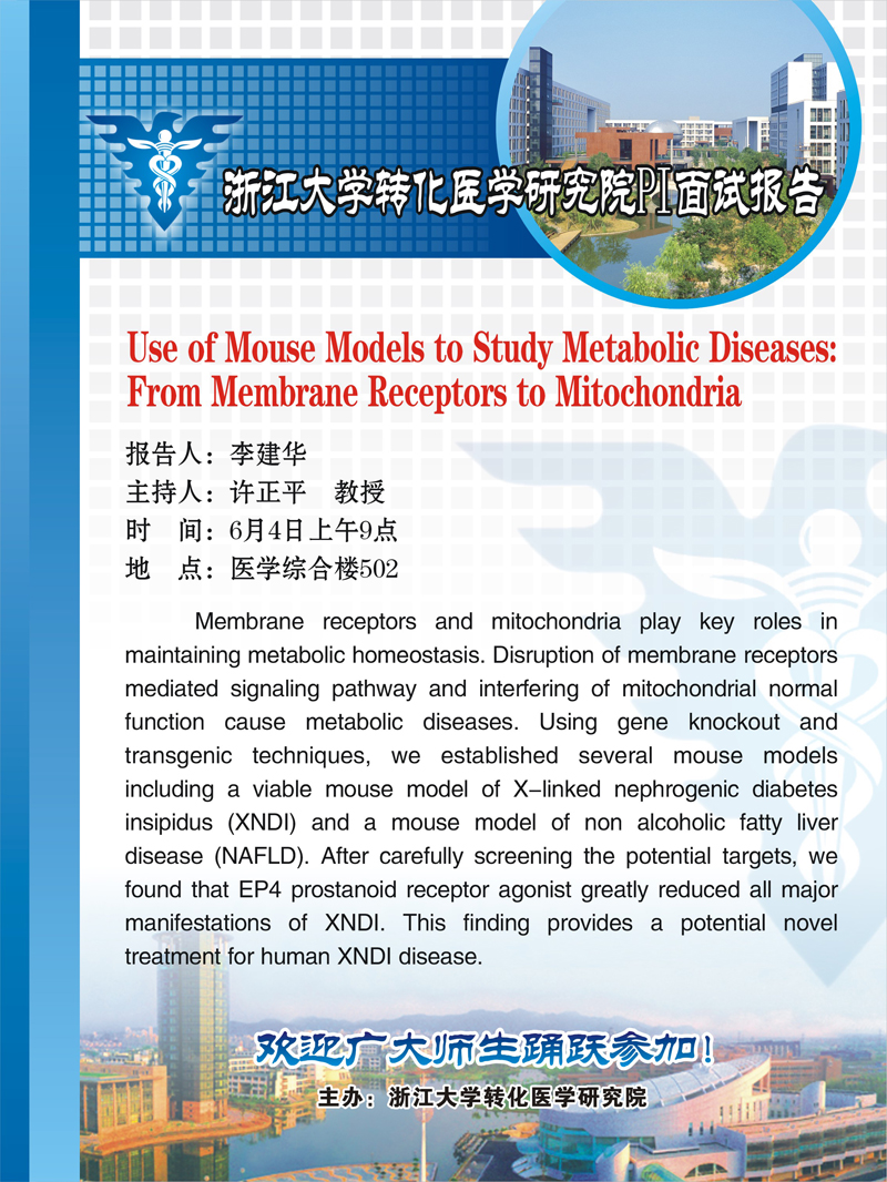 Center for Molecular Medicine, NHLBI,NIH李建华博士学术报告