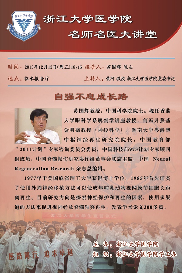 医学院名师名医大讲堂(第二讲)——苏国辉院士讲座的通知