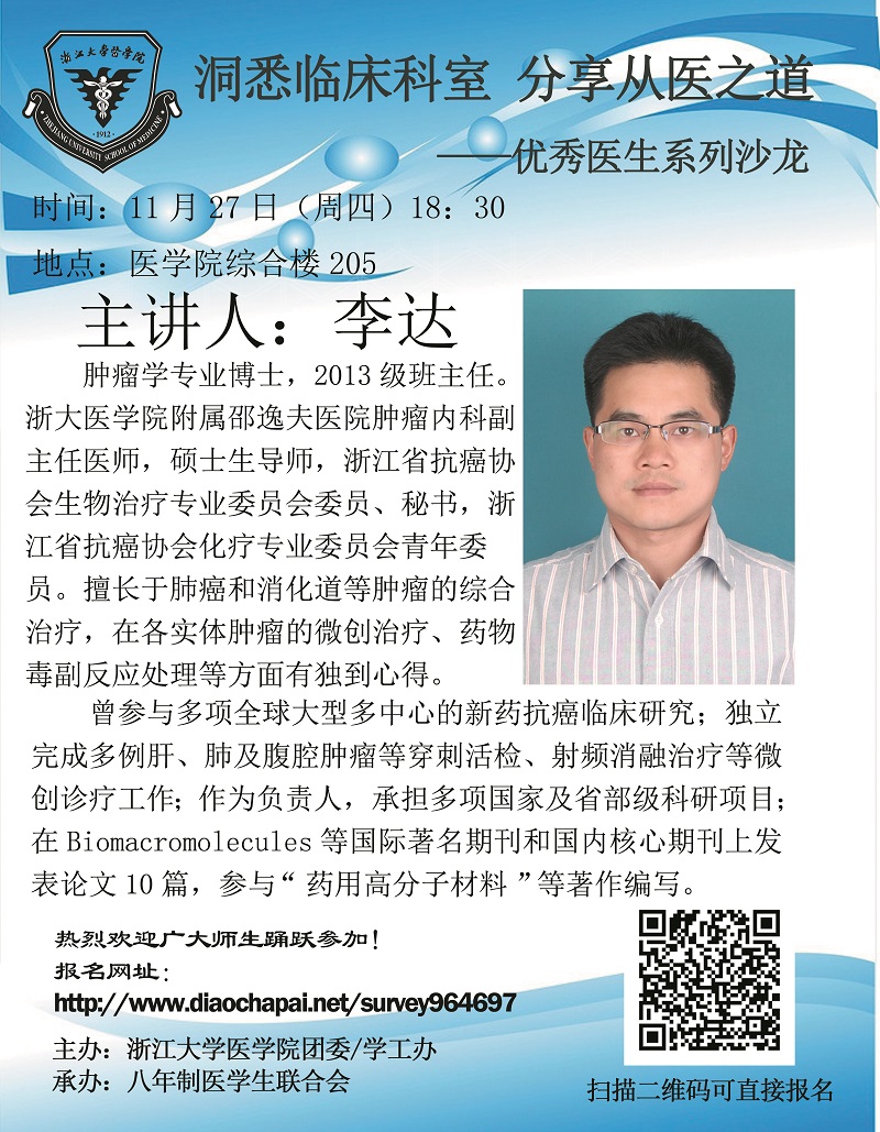 “洞悉临床科室 分享从医之道”优秀医生系列沙龙第五期--肿瘤内科李达老师