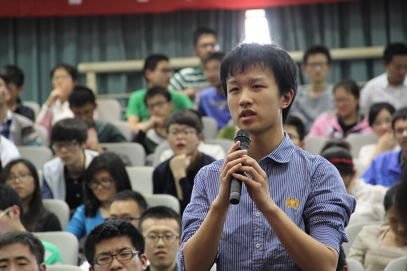 接着,钟院士开始了题为《创新素质的培养》的精彩报告。钟院士从“创新”和“创新驱动对人才素质的要求”两个方面进行了精彩的演讲。他指出真正的创新不只是发表学术论文,而是要更注重其实际意义,并从“执着追求”、“尊重事实”、“崇尚诚信”、“合群协作”和“健康体魄”这五个要素精彩诠释了创新驱动对人才素质的要求。钟院士结合自己最初研究慢性阻塞性肺病的经历,告诉同学想成为一个创新的人才,首先是要有执着的追求,很多事情是从责任的“要我做”到培养兴趣再到热爱和成为追求的学会“我要做”。关于“尊重事实”,钟院士举了当年抗击非典时研究支原体的例子,告诉学生权威的意见不一定是对的,自己的实践或者是亲眼看到的是可信,一定要尊重事实。关于从“崇尚诚信”,钟院士结合英出版商近期撤销43篇造假论文事件,告诫学生成为一名科学家的底线就是不能作假,诚信是创新的必备素质。关于“合群协作”,钟院士认为重大的创新是协作,协作的前提是共赢,协作的成功靠号召力。他结合年轻时去英国留学的例子,告诉学生人天生需要别人尊重,在与人合作中,最重要便是尊重他人。关于“健康体魄”,钟院士酷爱运动,曾是一名运动健将。今年已经年近八旬,依然精力充沛,坚持体育锻炼,奋斗在临床教学科研第一线。他告诫同学们,“不要忘记,你们现在有很强的潜力,所以你熬夜或者不吃饭、不睡觉,还可以熬。但是到你40岁、50岁的时候你就感觉到(精力不济)。所以我希望大家一直维持精力旺盛,很好地从事你的研究工作。希望在座的同学都把自己培养成一个创新型的人才”。在问答环节,同学们踊跃地提出了许多与医疗制度、科研等相关的问题,钟院士一一给出了详细的回答。