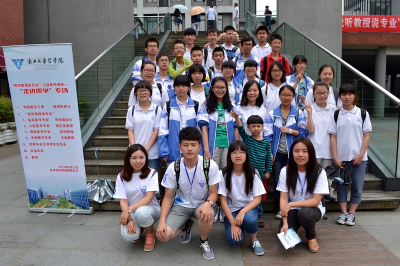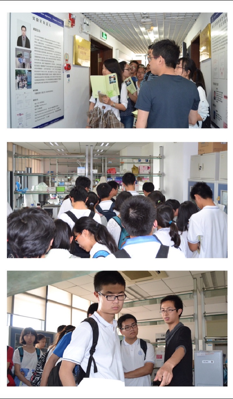 本次学院开放日活动受到了本校近百名学生和杭州市第十四中学30名高一学生的喜爱和积极参与。5月23日,淅沥的小雨挡不住同学们的热情,下午一点,大家都聚集在医学院辅楼,在志愿者的带领下分成九组按照不同的路线分组参观。大家首先参观了医学院优秀学生、先进集体、组织社团及学生活动的展板展示,了解学院优秀学生和组织的风采,欣赏了丰富多彩的医学生第二课堂。接着,进入人体博物馆,在医进会讲解员的带领下,了解人体结构,发现身体的奥秘。由于大部分同学都还未正式步入临床医学专业的学习,因此大家都十分惊讶好奇,发出阵阵赞叹。离开人体博物馆后,大家走向科研楼,先后参观了卫生部医学神经生物学重点实验室(段树民院士团队)、干细胞与组织工程实验室(欧阳宏伟教授团队)、肥胖与人体健康研究中心(朱善宽教授团队)、传染病诊治国家重点实验室(陈智教授团队)、血液细胞生物学实验室(黄河教授团队)、浙江大学呼吸疾病研究所(沈华浩教授团队)。每个实验室都安排了专门的老师和高年级研究生带领大家参观并进行详细讲解,帮助同学们了解实验室的研究方向、不同的实验室文化、学术成就和未来愿景。走出实验室,大家漫步医学院,走过无语良师碑等等,结束了一下午的参观。
