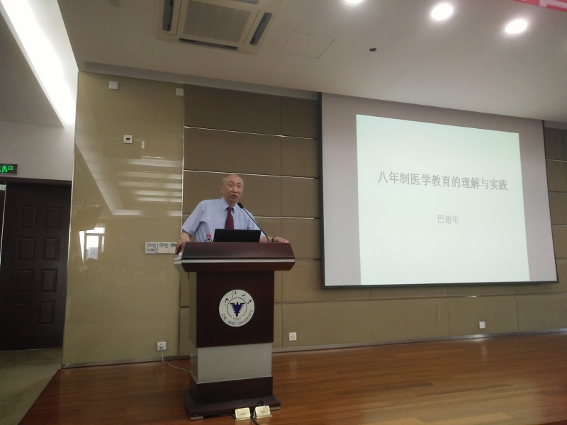 开幕式下半场,由巴德年院士为大家带来题为《八年制医学教育的理解与实践》的特邀报告。首先,巴院士着重比较国内外几所优秀的医学院校,提出了当初在浙江大学创建“4+4”临床医学八年制培养模式的初衷。接着,他提出医学的本质即“真,善,美”,希望八年制同学们具有“人文心、科学脑、世界观、勤劳手”,强调了意志品质,能力潜力,团队精神,健全体魄是一个优秀人才的必备素质。报告结束后,巴院士还与与会代表深入交流,巴院士的一席话令在场各位受益良多。