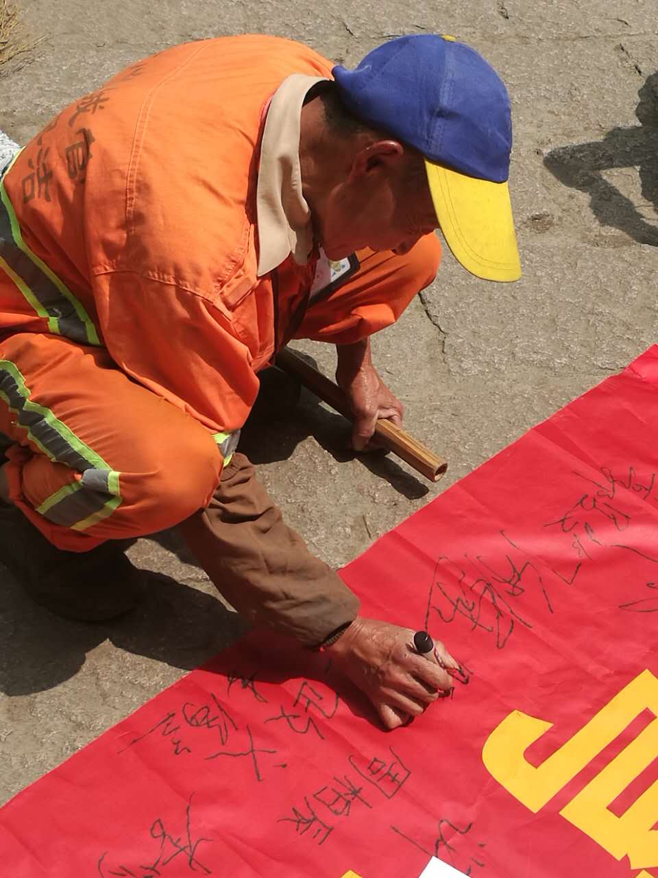 令我们感动的是,此次活动得到了多位从事环保事业人士的肯定,一位路过的环保局工作人员远远地跑过来,热情签下自己的名字并完成问卷调查,对我们的活动赞赏有加。一位年过半百的环卫工人甚至放下了手中的清扫工具,一定要给我们签下自己的名字,表达他对环保的热爱。
