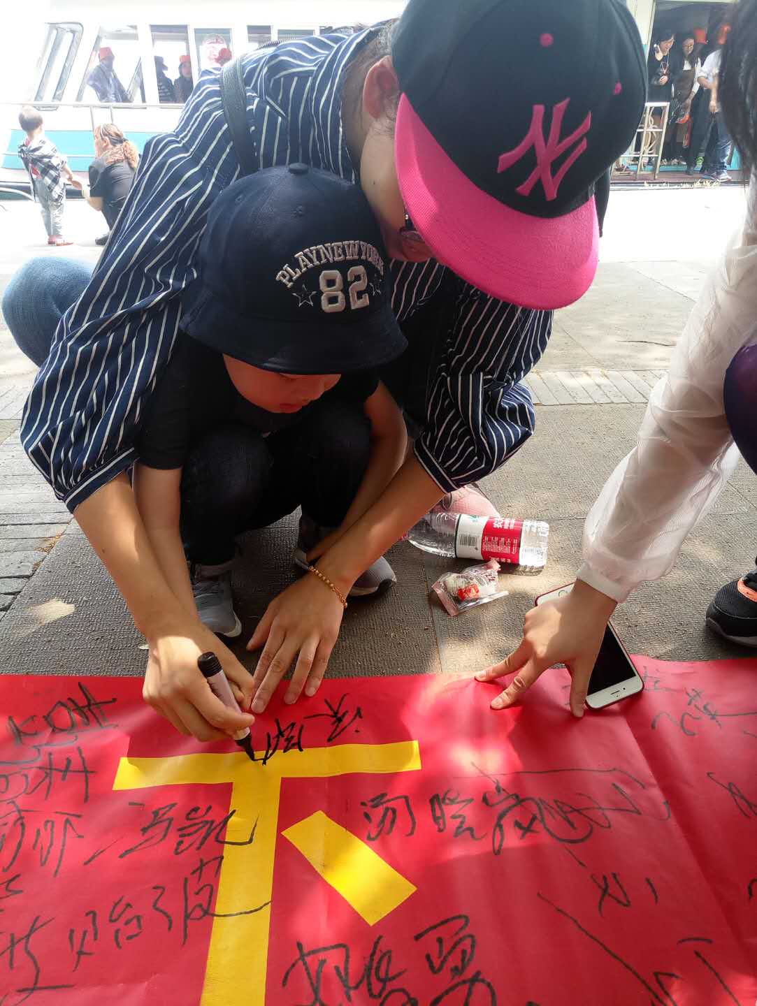 宣传活动中,过往市民反响热烈,上至八九十岁的老人,下至五六岁的孩子都纷纷加入进来,甚至连不会写自己名字的小朋友都画了个“光头强”以表示自己的支持。活动过程中,多个毅行团队加入到宣传队伍中,共同发放传单,喊出我们的活动口号。