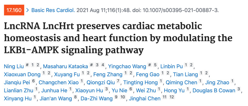 近日,浙江大学转化医学研究院/日韩欧美福利视频_黑人巨大人精品欧美三区_欧美成人另类人妖_欧美在线精品一区二区三区_欧美一区二区三区性视频_日韩精品欧美视频_性欧美极品xxxx欧美一区二区附属第二医院陈静海研究员、哈佛医学院波士顿儿童医院Da-Zhi Wang教授和日韩欧美福利视频_黑人巨大人精品欧美三区_欧美成人另类人妖_欧美在线精品一区二区三区_欧美一区二区三区性视频_日韩精品欧美视频_性欧美极品xxxx欧美一区二区附属第二医院王建安教授的联合团队在Basic Research in Cardiology 杂志发表LncRNA LncHrt preserves cardiac metabolic homeostasis and heart function by modulating the LKB1-AMPK signaling pathway的研究论文。报道了心肌细胞富集的长链非编码RNA LncHrt通过调节SIRT2-LKB1-AMPK 激酶信号级联反应,保护心梗后心脏能量代谢稳态,改善心脏缺血损伤后的结构与功能,揭示了新的基于RNA治疗的潜在靶点。