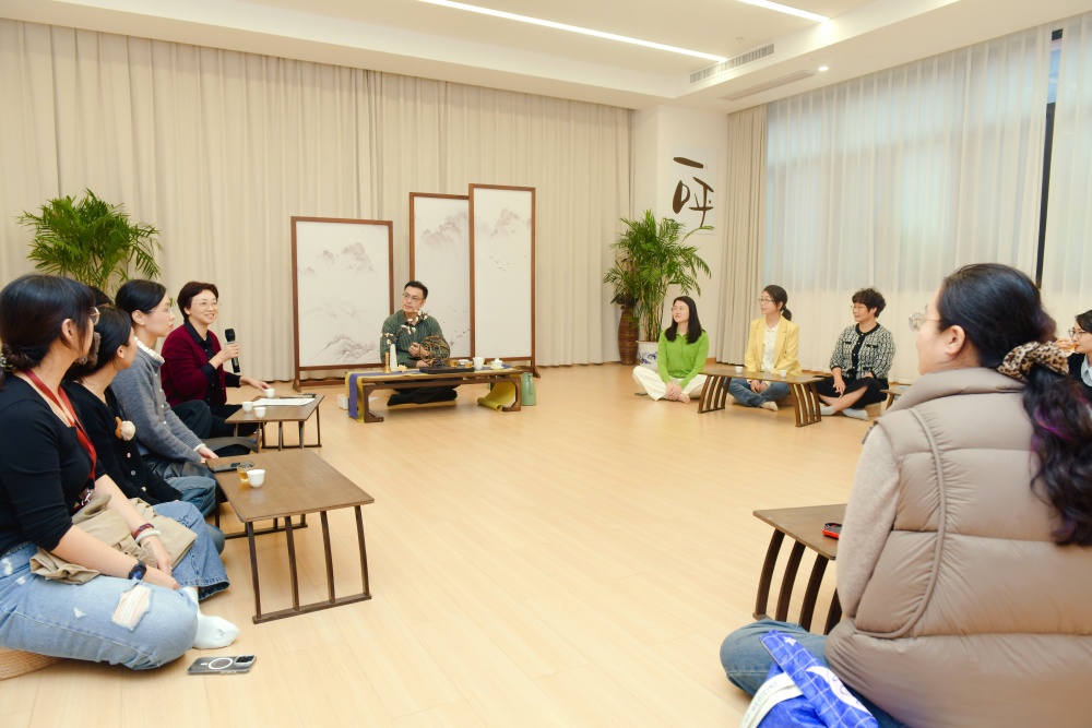 心理健康教育与咨询中心副主任黄皓明带领“会心茶席”体验活动。通过挑选茶具,创造性地布置茶席,引导教职工诠释个人独特的设计。黄皓明指出,在摆放茶席的过程中,每件茶具的选择和位置都反映了一个人的内心状态和为人处世的思维方式。这样的体验活动进一步促进了教职工对于自我的认识。