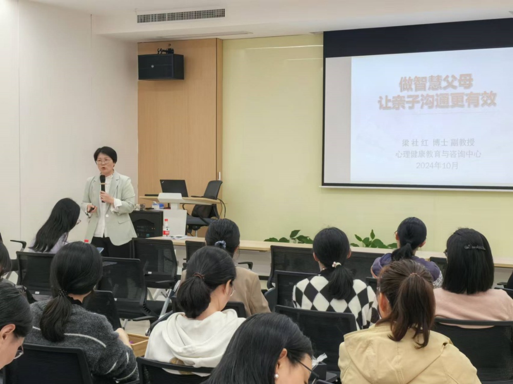 1115日,医学院工会举办“释压赋能、从‘心’开始”活动,邀请学校心理健康教育与咨询中心副主任梁社红开展题为《做智慧父母,让亲子沟通更有效》的主题讲座,同时,开设三项心理体验活动:光照/生物反馈体验、会心茶席活动和心理美学体验活动,帮助学院教职工舒缓身心压力,提高心理调节意识与能力,提升亲子沟通技巧,引领教职工迈向幸福生活,更加愉悦地工作。医学院党委副书记、工会主席徐凌霄出席活动并主持。